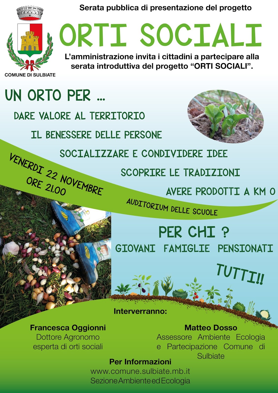 L’Amministrazione invita i Cittadini a partecipare alla serata pubblica di presentazione del progetto ORTI SOCIALI, venerdì 22 novembre 2019 alle ore 21,00 in Auditorium Giampiero Cavenago.